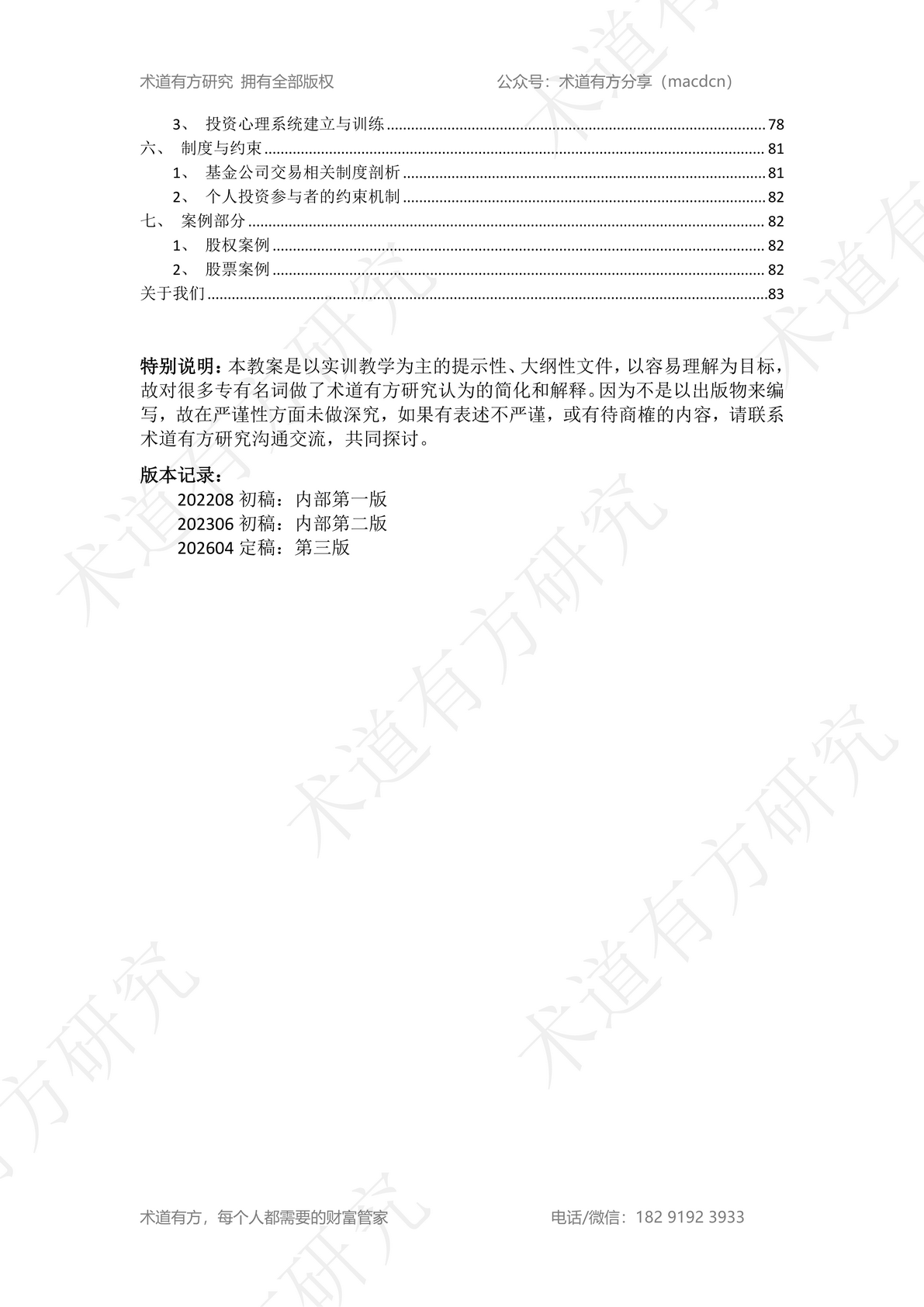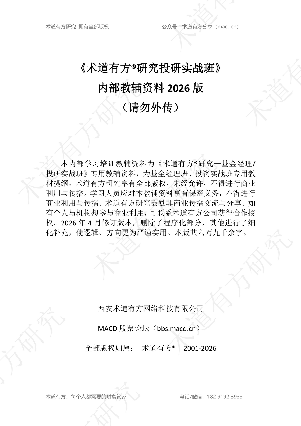 术道有方投研班内部教材2026修订版完成,添加微信免费领取。